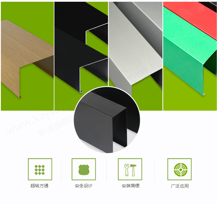 鋁方通可塑性強的優勢非常明顯,可以設計成各種不同的形狀,相比比其他的建筑鋁型材來說,鋁方通具有其它吊頂材料所沒有的耐腐蝕,耐候性,耐輻射,抗紫外線不論是戶外的型材鋁方通,鋁方管隔斷,還是作為室內吊頂的U型鋁方通,u槽鋁方通。它們在長期使用下不會褪色和變色會保持形狀。使用壽命長的優勢。
